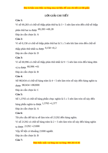 Đây là bản xem th , vu ử i lòng mua tài li u ệ đ xe ể m chi ti t ế (có l i ờ gi i ả ) L I Ờ GIẢI CHI TI T Ế Câu 1: Vì số 69,283 có ch s ữ ố th p ậ phân th ba l ứ