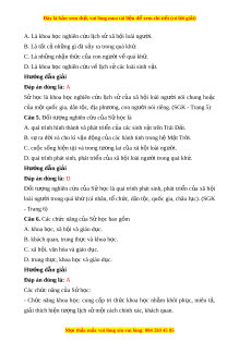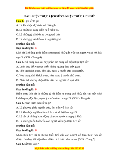 Câu 1. Lịch sử là gì? A. Là khoa h c d ọ đoán v ự ề tư ng l ơ ai. B. Là nh ng gì ữ đang di n r ễ a hi ở n t ệ i ạ . C. Là nh ng gì ữ đã di n r ễ a trong quá kh . ứ D. Là nh ng gì ữ s di ẽ n r ễ a trong tư ng ơ lai. Hư ng ớ d n gi ẫ i ả Đáp án đúng là: C Lịch sử là nh ng ữ gì đã di n ễ ra trong quá kh ứ g n ắ v i ớ con ngư i ờ và xã h i ộ loài ngư i ờ . (SGK - Trang 4) Câu 2. N i ộ dung nào sau đây ph n ả ánh đúng v hi ề n t ệ h c l ự ch s ị ? ử