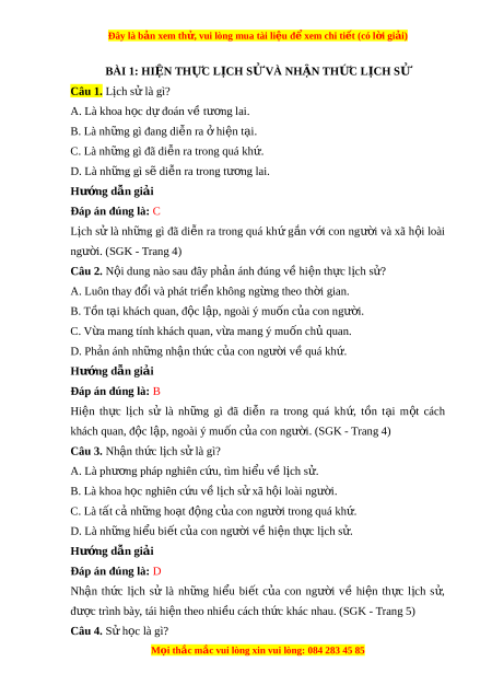 Đây là bản xem th , vu ử i lòng mua tài li u ệ đ xe ể m chi ti t ế (có l i ờ gi i ả ) BÀI 1: HI N Ệ TH C Ự L C Ị H S Ử VÀ NH N Ậ TH C Ứ L C Ị H SỬ