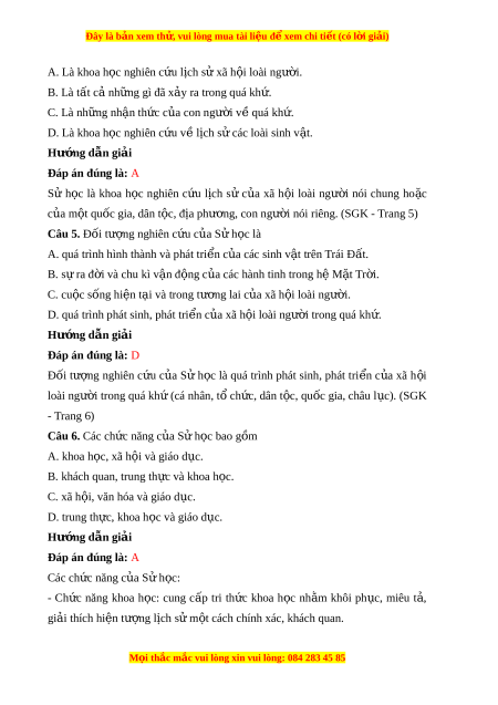 Đây là bản xem th , vu ử i lòng mua tài li u ệ đ xe ể m chi ti t (c ế ó l i ờ gi i ả ) A. Là khoa h c ọ nghiên c u l ứ ch s ị ử xã h i ộ loài ngư i ờ . B. Là t t ấ cả nh ng gì ữ đã x y r ả a trong quá kh . ứ C. Là nh ng ữ nh n t ậ h c c ứ a ủ con ngư i ờ v quá ề kh . ứ D. Là khoa h c ọ nghiên c u v ứ l ề ch s ị ử các loài sinh v t ậ . Hư ng d ớ ẫn gi i ả Đáp án đúng là: A Sử h c ọ là khoa h c ọ nghiên c u ứ l ch ị sử c a ủ xã h i ộ loài ngư i ờ nói chung ho c ặ c a ủ m t ộ quốc gia, dân t c, đ ộ ịa phư ng, ơ con ngư i