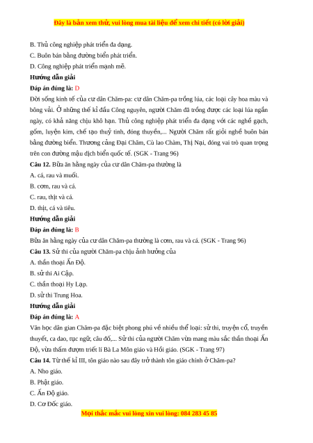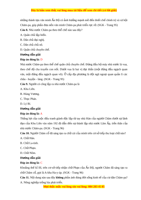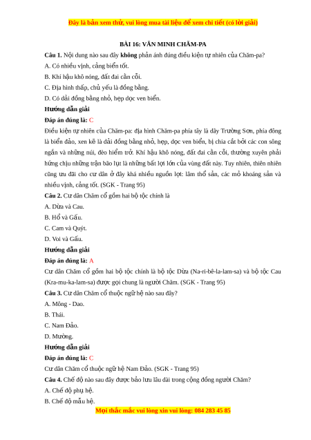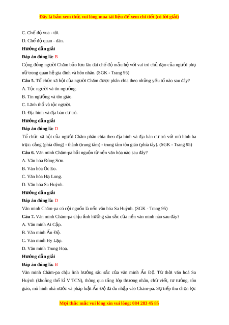 Đây là bản xem th , vu ử i lòng mua tài li u ệ đ xe ể m chi ti t (c ế ó l i ờ gi i ả ) C. Ch đ ế vua ộ - tôi. D. Ch đ ế qua ộ n - dân. Hướng d n ẫ gi i ả Đáp án đúng là: B C ng ộ đ ng ng ồ ư i ờ Chăm bảo l u ư lâu dài ch đ ế m ộ ẫu h v ệ i ớ vai trò chủ đ o c ạ ủa người phụ