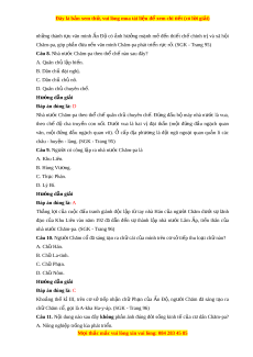 Đây là bản xem th , vu ử i lòng mua tài li u ệ đ xe ể m chi ti t ế (có l i ờ gi i ả ) nh ng ữ thành t u ự văn minh n Ấ Đ c ộ ó nh h ả ư ng ở m nh m ạ ẽ đ n ế thi t ế ch ế chính tr ịvà xã h i ộ Chăm-pa, góp phần đ a ư n n vă ề n minh Chăm-pa phát tri n r ể c ự r . (S ỡ GK - Trang 95) Câu 8. Nhà nư c ớ Chăm-pa theo thể ch nà ế o sau đây? A. Quân chủ lập hiến. B. Dân ch đ ủ ại ngh .ị C. Dân ch c ủ hủ nô. D. Quân chủ chuyên chế. Hư n ớ g d n ẫ gi i ả Đáp án đúng là: D Nhà nư c ớ Chăm-pa theo th ể ch ế quân ch ủ chuyên ch . ế Đ ng ứ đ u ầ b ộ máy nhà nư c ớ là vua, theo chế độ cha truy n ề con n i ố . Dư i ớ vua là hai vị đ i ạ th n ầ (m t ộ đ ng ứ đ u ầ ng c ạ h quan văn, m t ộ đ ng ứ đ u ầ ng c ạ h quan võ). Ở c p ấ đ a ị phư ng ơ là đ i ộ ngũ ngo i ạ quan qu n ả lí các