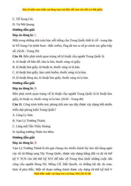 Đây là bản xem th , vu ử i lòng mua tài li u ệ đ xe ể m chi ti t (c ế ó l i ờ gi i ả ) C. T X ổ ung Chi. D. T M ư ã Quang. Hư ng d ớ ẫn gi i ả Đáp án đúng là: C M t ộ trong nh ng ữ nhà toán h c ọ n i ổ ti ng ế c a ủ Trung Qu c t ố h i ờ kì c ổ - trung đ i ạ là Tổ Xung Chi (th i ờ Nam - B c ắ tri u) ề . Ông đã tìm ra s pi ố chính xác g m ồ b y ả số. (SGK - Trang 39)