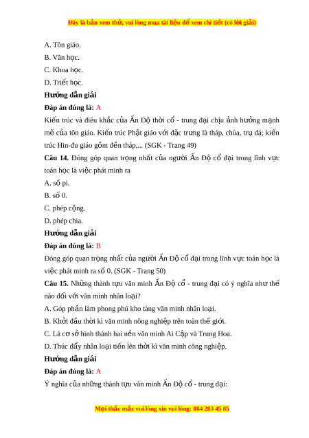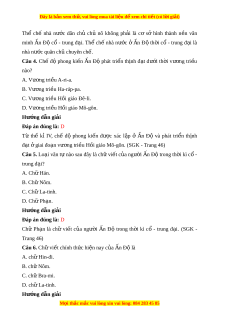 Đây là bản xem th , vu ử i lòng mua tài li u ệ đ xe ể m chi ti t ế (có l i ờ gi i ả ) Đáp án đúng là: A Ch vi ữ t ế chính th c ứ hi n nay ệ c a ủ n Đ Ấ ộ là ch H ữ in-đi. (SGK - Trang 46) Câu 7. Hai b s ộ ử thi nổi ti ng nh ế t ấ c a ủ n Ấ Đ t ộ h i ờ kì c đ ổ i ạ là A. Sa-ki-a Mu-ni và Vê-đa. B. Tai-gi M ơ a-han và La Ki-la.
