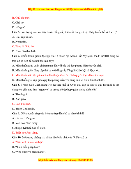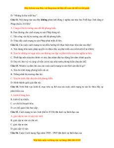 Câu 9. Ở Pháp, nền tảng của hệ tư tưởng dân chủ tư sản chính là A. Cải cách tôn giáo. B. Văn hóa Phục hưng.