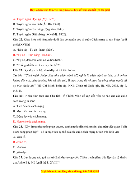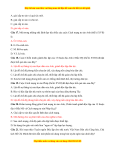 Câu 20. Điểm tương đồng giữa Cách mạng tư sản Anh, Chiến tranh giành độc lập của 13 thuộc