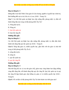 Câu 7. Các thủ lĩnh quân sự đư c ợ ban c p ấ ru ng ộ đ t ấ , phong tư c ớ v ,ị d n ầ trở thành tầng l p nào t ớ rong xã h i ộ phong ki n ế Tây Âu? A. Nông dân t do. ự B. Nông nô. C. Quý t c quân s ộ . ự D. Quý t c ộ tăng l . ữ Hư ng d ớ ẫn gi i ả Đáp án đúng là: C