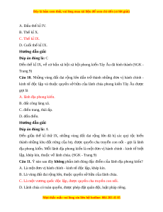 C. lãnh chúa phong ki n và nông nô. ế D. chủ nô và quý t c. ộ Hư ng d ớ ẫn gi i ả Đáp án đúng là: C Cùng v i ớ quá trình đó, xã h i ộ phong ki n ế Tây Âu d n ầ hình thành v i ớ sự ra đ i ờ c a ủ hai giai c p m ấ i