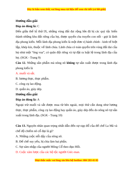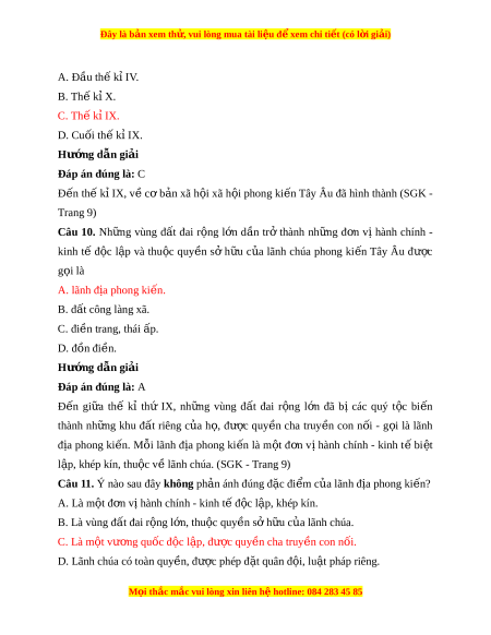 Đây là bản xem th , vu ử i lòng mua tài li u ệ đ xe ể m chi ti t (c ế ó l i ờ gi i ả ) A. Đầu th k ế ỉ IV. B. Th k ế ỉ X. C. Th k ế ỉ IX. D. Cuối th k ế I ỉ X. Hư ng d ớ ẫn gi i ả Đáp án đúng là: C Đ n ế thế kỉ IX, v c ề ơ b n ả xã h i ộ xã h i ộ phong ki n