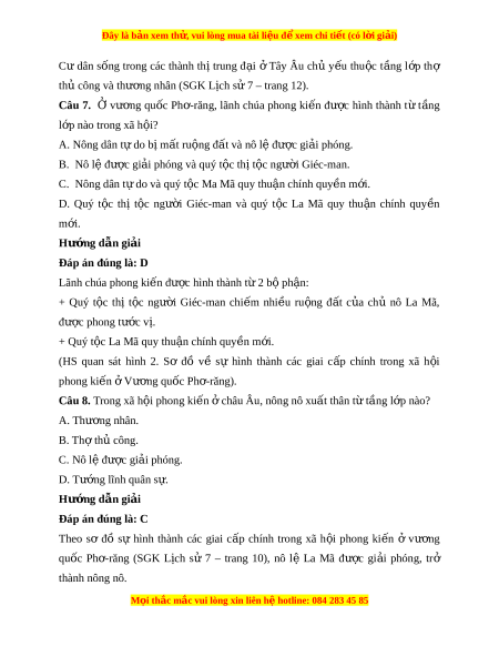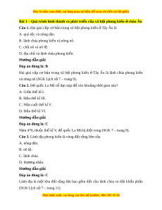 (HS quan sát hình 2. Sơ đồ về sự hình thành các giai c p ấ chính trong xã h i ộ phong ki n ế ở Vư ng ơ quốc Ph - ơ răng). Câu 8. Trong xã h i ộ phong ki n ế châu  ở u, nông nô xu t ấ thân t t ừ ng l ầ p nào? ớ A. Thư ng ơ nhân. B. Th t ợ h công. ủ C. Nô l đ ệ ư c gi ợ i ả phóng. D. Tư ng l ớ ĩnh quân s . ự Hư ng d ớ ẫn gi i ả Đáp án đúng là: C