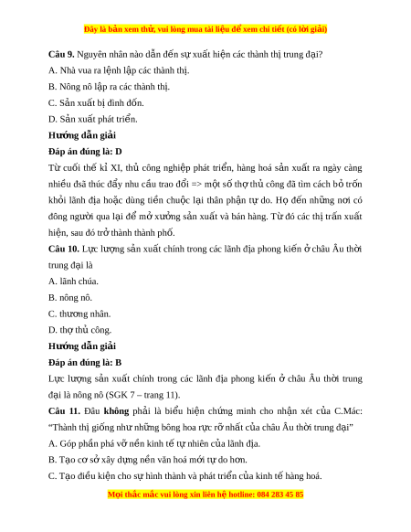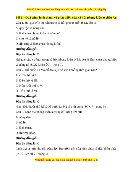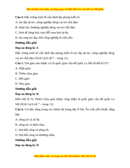 Đây là bản xem th , vu ử i lòng mua tài li u ệ đ xe ể m chi ti t (c ế ó l i ờ gi i ả ) Câu 4. Đặc tr ng ki ư nh t c ế a l ủ ãnh địa phong ki n l ế à A. t c ự p t ấ t