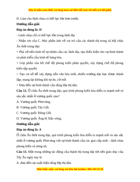Câu 9. Nguyên nhân nào d n đ ẫ n s ế xu ự t ấ hi n các t ệ hành th t ị rung đ i ạ ? A. Nhà vua ra l nh l ệ p ậ các thành th .ị B. Nông nô l p r ậ a các thành th .ị C. S n xu ả t ấ b đì ị nh đ n. ố D. S n ả xu t ấ phát tri n. ể Hư ng d ớ ẫn gi i ả Đáp án đúng là: D
