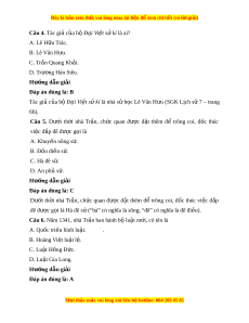 Câu 4. Tác giả c a b ủ ộ Đ i ạ Vi t ệ s kí ử là ai? A. Lê H u ữ Trác. B. Lê Văn H u. ư C. Trần Quang Kh i ả . D. Trư ng H ơ án Siêu. Hư ng d ớ ẫn gi i ả Đáp án đúng là: B Tác giả c a ủ b ộ Đ i ạ Vi t