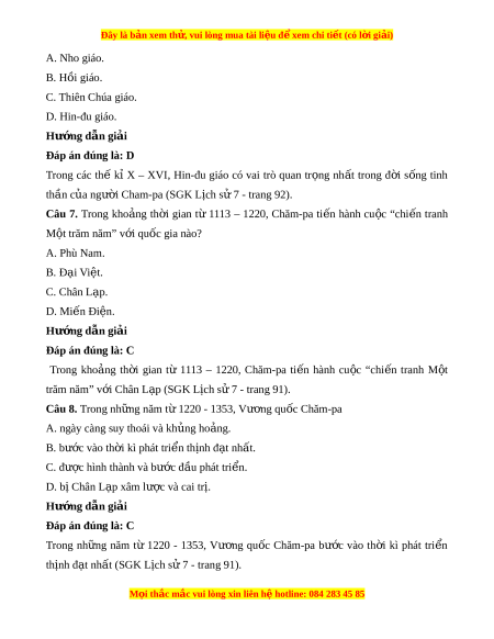 Đây là bản xem th , vu ử i lòng mua tài li u ệ đ xe ể m chi ti t (c ế ó l i ờ gi i ả ) A. Nho giáo. B. Hồi giáo. C. Thiên Chúa giáo. D. Hin-đu giáo. Hư ng d ớ ẫn gi i ả Đáp án đúng là: D