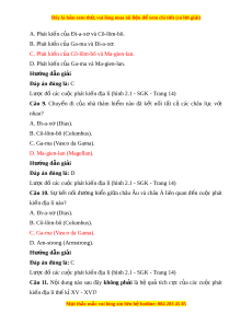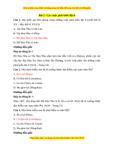 ữ châu Âu và châu Á liên quan đ n ế cu c ộ phát ki n đ ế ịa lí nào? A. Đi-a-x ( ơ Dias). B. Cô-lôm-bô (Columbus). C. Ga-ma (Vasco da Gama). D. Am-strong (Armstrong). Hư ng d ớ ẫn gi i ả Đáp án đúng là: C Lư c đ ợ ồ các cu c phát ộ ki n đ ế a l