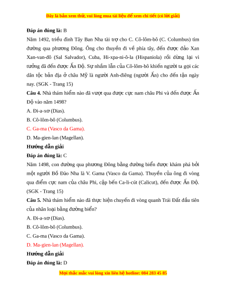Đây là bản xem th , vu ử i lòng mua tài li u ệ đ xe ể m chi ti t (c ế ó l i ờ gi i ả ) Đáp án đúng là: B Năm 1492, tri u