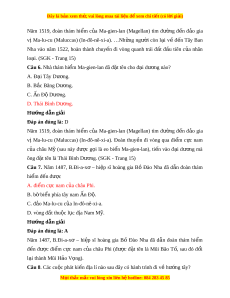 ị í (hình 2.1 - SGK - Trang 14) Câu 9. Chuy n ế đi c a ủ nhà thám hi m ể nào đã k t ế n i ố t t ấ cả các châu l c ụ v i ớ nhau? A. Đi-a-x ( ơ Dias). B. Cô-lôm-bô (Columbus). C. Ga-ma (Vasco da Gama). D. Ma-gien-lan (Magellan). Hư ng d ớ ẫn gi i ả Đáp án đúng là: D Lư c đ ợ ồ các cu c phát ộ ki n đ ế a l