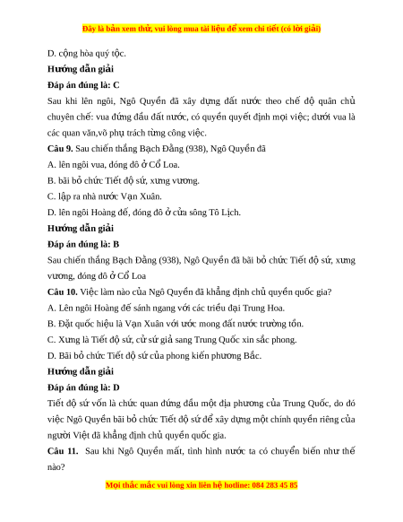 Đây là bản xem th , vu ử i lòng mua tài li u ệ đ xe ể m chi ti t (c ế ó l i ờ gi i ả ) D. c ng ộ hòa quý t c. ộ Hư ng d ớ ẫn gi i ả Đáp án đúng là: C Sau khi lên ngôi, Ngô Quy n ề đã xây d ng ự đ t ấ nư c