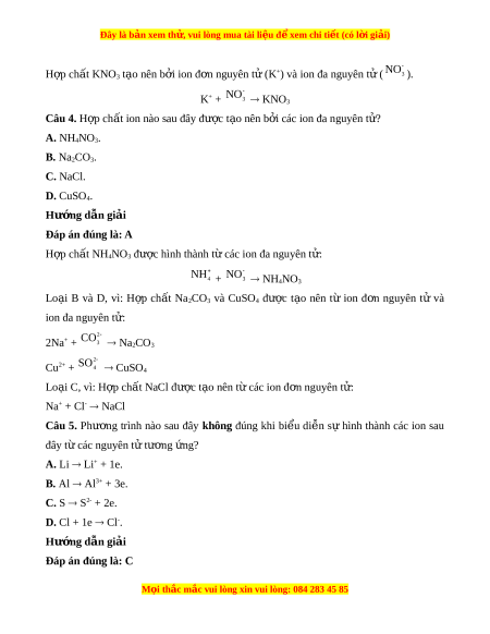 Đây là bản xem th , vu ử i lòng mua tài li u ệ đ xe ể m chi ti t (c ế ó l i ờ gi i ả ) H p ợ ch t ấ KNO + NO 3 t o ạ nên b i ở ion đ n nguyên t ơ (