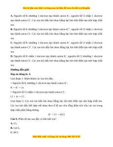 ạ thành anion Cl-. Các ion trái d u ấ hút nhau b ng ằ l c ự hút tĩnh đi n ệ t o ạ nên h p ợ ch t ấ ion. Hư ng d ớ ẫn gi i ả Đáp án đúng là: A Giai đo n