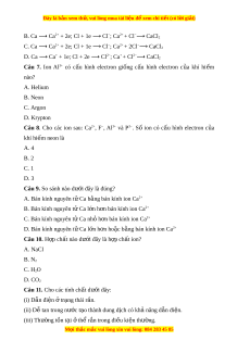 Câu 8. Cho các ion sau: Ca2+, F−, Al3+ và P3−. Số ion có c u ấ hình electron c a ủ khí hi m ế neon là A. 4 B. 2 C. 1 D. 3