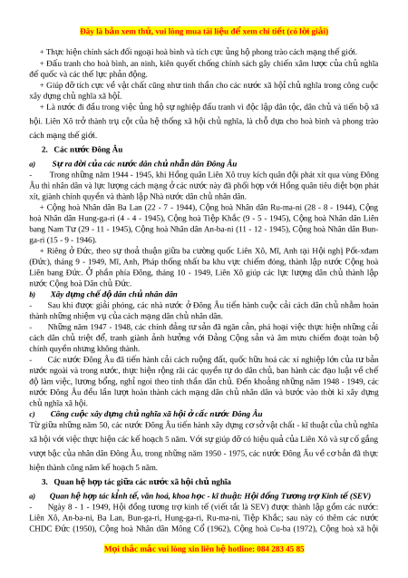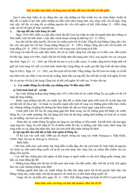 Nga là SNG). Ngày 25 - 12 - 1991, sau l i ờ tuyên b ố t c ừ h c ứ T ng ổ th ng ố c a ủ M.Goóc-ba-ch p, ố lá c ờ đỏ búa li m ề trên nóc đi n ệ Crem-lin b ịh ạ xu ng, ố đánh d u ấ s ự s p ụ đ ổ c a ủ ch ế đ ộ xã h i ộ ch ủ nghĩa ở Liên Xô và s t ự an v c ỡ a ủ Liên bang C ng ộ hoà xã h i ộ ch nghĩ ủ a Xô vi t ế sau 74 năm t n ồ t i ạ . 2. Cac nư c ơ Đông Âu t n ư a s ư au nh n ư g năm 70 đ n ế năm 1991