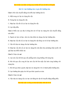 Đây là bản xem th , vu ử i lòng mua tài li u ệ đ xe ể m chi ti t (c ế ó l i ờ gi i ả ) Bài 32. L c h ự ư ng t ớ âm và gia t c ố hư ng t ớ âm Câu 1: Khi v t ậ chuy n ể đ ng t ộ ròn đ u l ề c ự hư ng t ớ âm là: A. M t ộ trong các l c t ự ác d ng l ụ ên v t ậ . B. Tr ng l ọ c t ự ác d ng l ụ ên v t ậ . C. H p l ợ c c ự a ủ t t ấ c các ả l c t ự ác d ng l ụ ên v t ậ . D. L c h ự ấp dẫn. Câu 2: Đi u