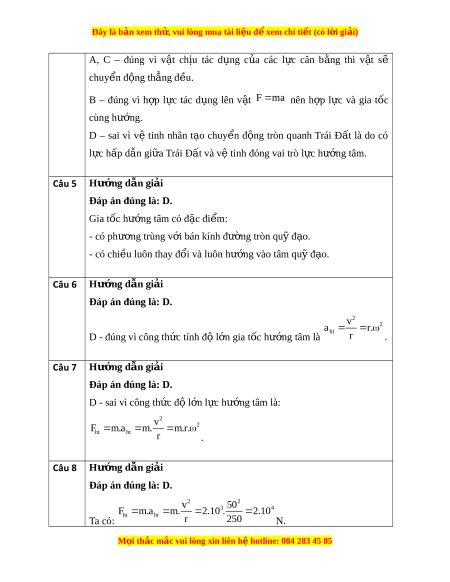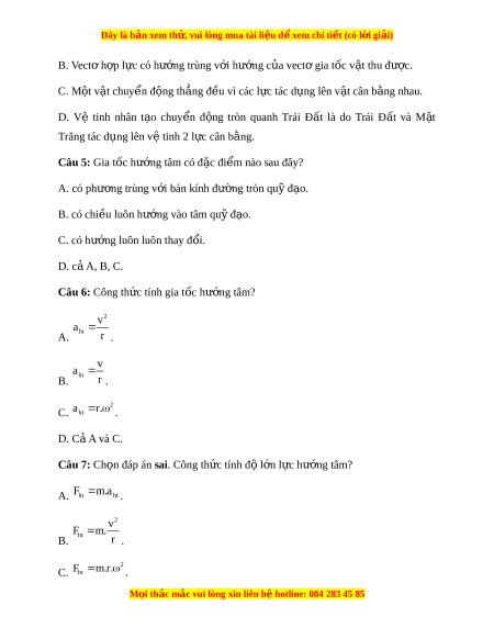 Đây là bản xem th , vu ử i lòng mua tài li u ệ đ xe ể m chi ti t (c ế ó l i ờ gi i ả ) B. Vect h ơ p ợ l c có h ự ư ng t ớ rùng v i ớ hư ng c ớ a ủ vect gi ơ a t c v ố t ậ thu đư c. ợ C. M t ộ v t ậ chuy n đ ể ng t ộ h ng ẳ đ u vì ề các l c ự tác d ng l ụ ên v t ậ cân b ng nhau. ằ D. Vệ tinh nhân t o ạ chuy n ể đ ng ộ tròn quanh Trái Đ t ấ là do Trái Đ t ấ và M t ặ Trăng tác d ng l ụ ên vệ tinh 2 l c cân b ự ng. ằ