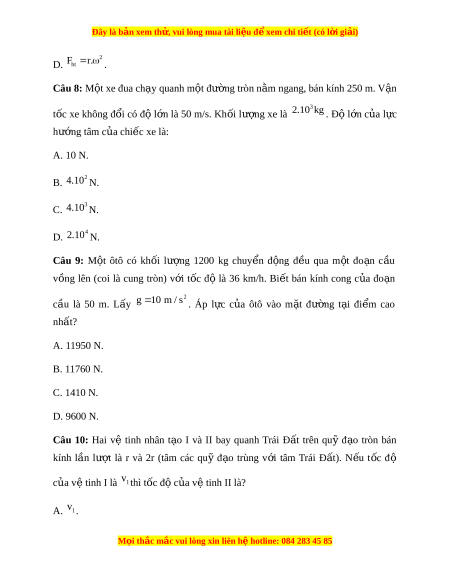 Đây là bản xem th , vu ử i lòng mua tài li u ệ đ xe ể m chi ti t (c ế ó l i ờ gi i ả ) 2 D. F r . ht . Câu 8: M t ộ xe đua ch y ạ quanh m t ộ đư ng ờ tròn n m