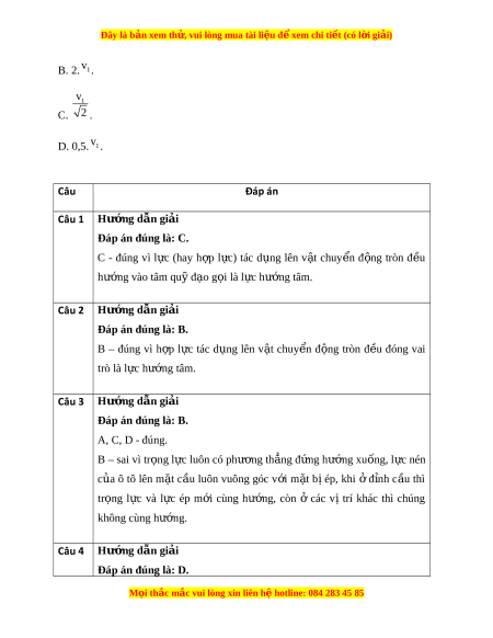 Đây là bản xem th , vu ử i lòng mua tài li u ệ đ xe ể m chi ti t (c ế ó l i ờ gi i ả ) B. 2. v1. v1 C. 2 . D. 0,5. v1. Câu Đáp án Câu 1 Hư ng d ớ ẫn gi i ả