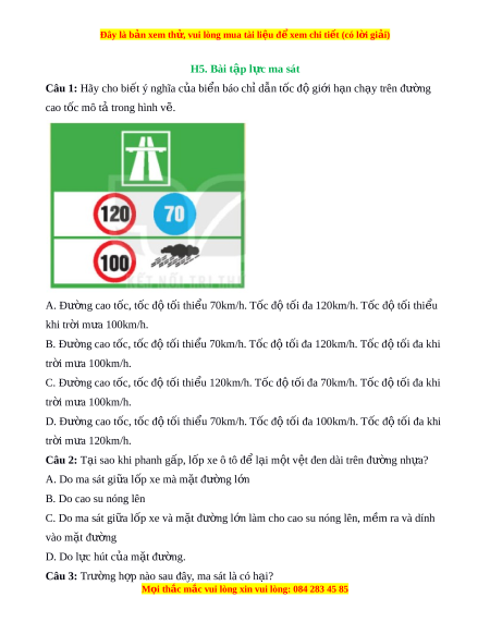 Đây là bản xem th , vu ử i lòng mua tài li u ệ đ xe ể m chi ti t (c ế ó l i ờ gi i ả ) H5. Bài t p l ậ c m ự a sát Câu 1: Hãy cho bi t ế ý nghĩa c a ủ bi n báo ch ể ỉ dẫn tốc độ gi i ớ h n ch ạ y ạ trên đư ng ờ