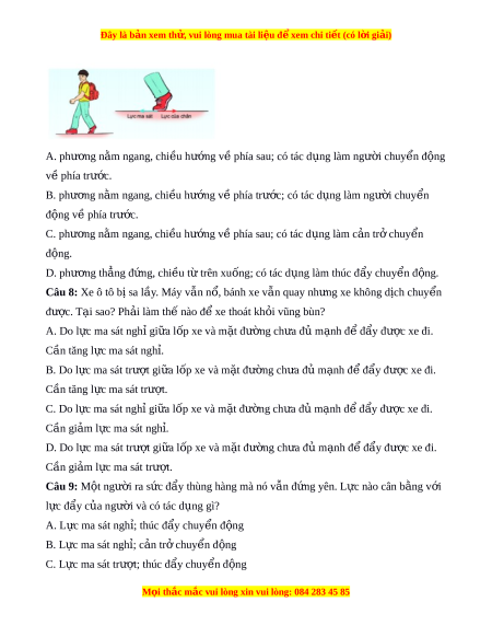 Đây là bản xem th , vu ử i lòng mua tài li u ệ đ xe ể m chi ti t (c ế ó l i ờ gi i ả ) A. phư ng ơ n m ằ ngang, chi u ề hư ng v ớ phí ề a sau; có tác d ng l ụ àm ngư i ờ chuy n đ ể ng ộ v phí ề a trư c. ớ B. phư ng n ơ m ằ ngang, chi u h ề ư ng v ớ ề phía trư c; ớ có tác d ng l ụ àm ngư i ờ chuy n ể đ ng ộ v phí ề a trư c. ớ C. phư ng n ơ m ằ ngang, chi u h ề ư ng v ớ ề phía sau; có tác d ng l ụ àm c n ả tr chuy ở n ể đ ng. ộ D. phư ng ơ th ng đ ẳ ng, chi ứ u ề t t ừ rên xu ng; ố có tác d ng l ụ àm thúc đ y chuy ẩ n ể đ ng. ộ