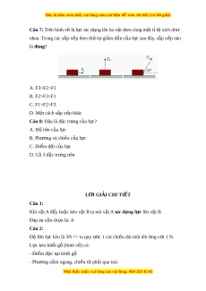 Câu 8: Đâu là đ c t ặ r ng c ư a l ủ c? ự A. Đ l ộ n c ớ a ủ l c ự B. Phư ng ơ và chi u c ề a l ủ c ự C. Đi m ể đ t ặ c a l ủ c ự D. Cả 3 đ c t ặ r ng t ư rên L I Ờ GIẢI CHI TI T Ế Câu 1: Khi v t ậ A đ y ho ẩ c kéo v ặ t ậ B ta nói v t