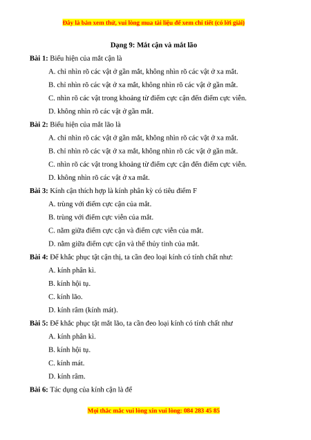 Dạng 9: Mắt cận và mắt lão