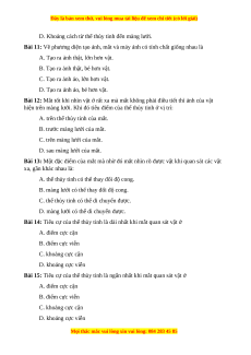 Ảnh của vật mà ta nhìn hiện trên màng lưới có đặc điểm là ảnh thật, ngược chiều và nhỏ hơn vật. Đáp án: C Bài 3:
