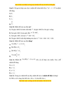 Câu 13. Trong các m nh đ sau đây, m nh đ nào có ệ ề ệ ề m nh đ đ oệ ề ả là đúng?
