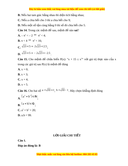 Đây là bản xem th , vu ử i lòng mua tài li u ệ đ xe ể m chi ti t (c ế ó l i ờ gi i ả ) B. N u ế hai tam giác b ng nhau ằ thì di n t ệ ích b ng ằ nhau; C. N u ế a chia h t ế cho 3 thì a chia h t ế cho 9; D. N u m ế t ộ số t n ậ cùng b ng ằ 0 thì số đó chia h t ế cho 5.