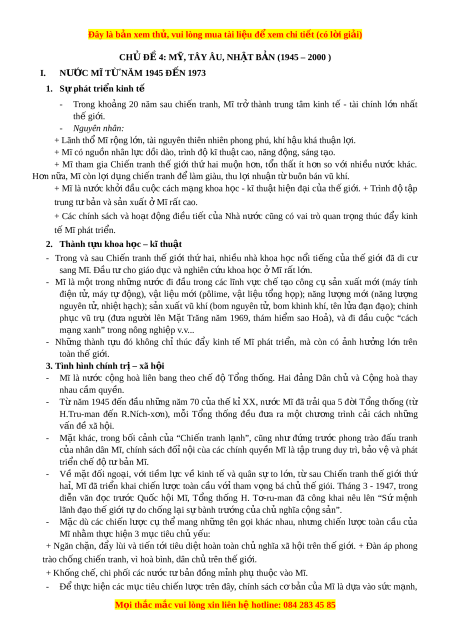 ớ tài nguyên thiên nhiên phong phú, khí h u khá ậ thu n l ậ i ợ . + Mĩ có ngu n nhâ ồ n l c ự d i ồ dào, trình đ kĩ ộ thu t ậ cao, năng đ ng, ộ sáng t o. ạ + Mĩ tham gia Chi n ế tranh thế gi i ớ thứ hai mu n ộ h n, ơ t n ổ th t ấ ít h n ơ so v i ớ nhi u ề nư c ớ khác. H n n ơ a ữ , Mĩ còn l i ợ d ng ụ chi n t ế ranh đ l ể àm giàu, thu l i ợ nhu n t ậ buôn bá ừ n vũ khí. + Mĩ là nư c ớ kh i ở đ u ầ cu c ộ cách m ng ạ khoa h c ọ - kĩ thu t ậ hi n ệ đ i ạ c a ủ th ế gi i ớ . + Trình đ ộ t p ậ