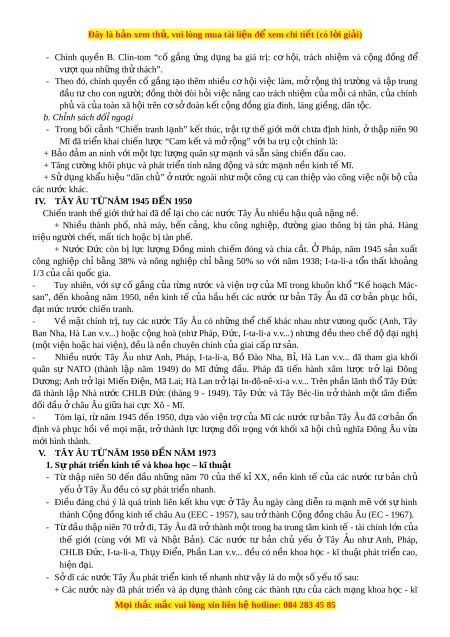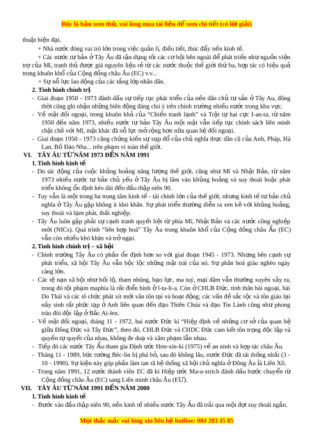 ệ đ xe ể m chi ti t ế (có l i ờ gi i ả ) thuật hi n đ ệ ại. + Nhà nư c ớ đóng vai trò l n t ớ rong vi c ệ qu n l ả í, đi u t ề i t ế , thúc đ y n ẩ n ki ề nh t . ế + Các nư c ớ t ư b n ả ở Tây Âu đã t n ậ d ng ụ t t ố các c ơ h i ộ bên ngoài đ ể phát tri n ế nh ư ngu n ồ vi n ệ trợ c a ủ Mĩ, tranh thủ đư c ợ giá nguyên li u ệ rẻ t ừ các nư c ớ thu c ộ thế gi i ớ th ứ ba, h p ợ tác có hi u ệ quả trong khuôn khổ c a ủ C ng ộ đ ng c ồ hâu Âu (EC) v.v... + S n ự ỗ l c ự lao đ ng ộ c a ủ các tầng l p nhâ ớ n dân. 2. Tinh hinh chinh tri - Giai đo n ạ 1950 - 1973 đánh d u ấ sự ti p ế t c ụ phát tri n ể c a ủ n n ề dân ch ủ t ư s n ả ở Tây Au, đông th i ờ cũng ghi nhận nh ng bi ữ ên đ ng đá ộ