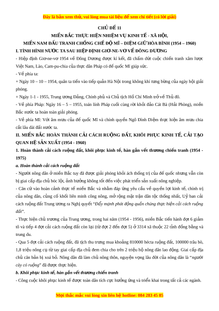 ệ đ xe ể m chi ti t ế (có l i ờ gi i ả ) CHỦ ĐỀ 11 MI N Ề B C Ắ TH C Ự HI N Ệ NHI M Ệ V K Ụ INH T - X Ế Ã H I Ộ , MI N Ề NAM Đ U Ấ TRANH CH N Ố G CH Đ Ế M Ộ Ĩ – DI M Ệ GI H