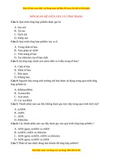 Câu 13: Mối quan hệ giữa gen và tính trạng là: