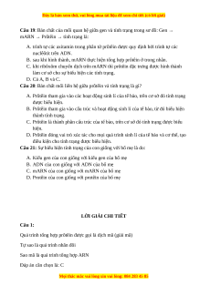 D. Protêin của con giống với protêin của bố mẹ LỜI GIẢI CHI TIẾT Câu 1: