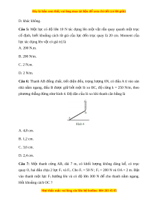Câu 5: M t l c có đ l n 10 N tác d ng lên m t v t r n quay quanh m t tr cộ ự ộ ớ ụ ộ ậ ắ ộ ụ