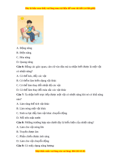Đây là bản xem th , vu ử i lòng mua tài li u ệ đ xe ể m chi ti t ế (có l i ờ gi i ả ) A. Đ ng năng ộ B. Đi n năng ệ C. Hóa năng D. Quang năng Câu 6: B ng các ằ