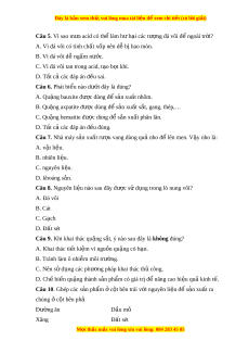 Câu 7. Nhà máy s n xu ả ất rư u vang dùng qu ợ nho đ ả ể lên men. V y ậ nho là: A. v t ậ li u. ệ B. nhiên li u. ệ C. nguyên li u. ệ D. khoáng s n. ả