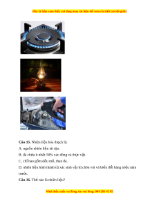 Câu 15. Nhiên li u hóa t ệ h ch ạ là: A. nguồn nhiên li u t ệ ái t o. ạ B. đá ch a í