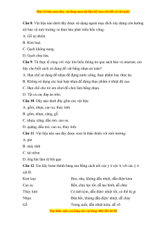 Câu 11. Vật liệu nào sau đây được xem là thân thiện với môi trường: A. pin B. máy tính C. túi nilon