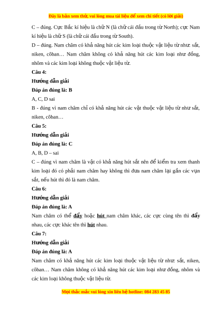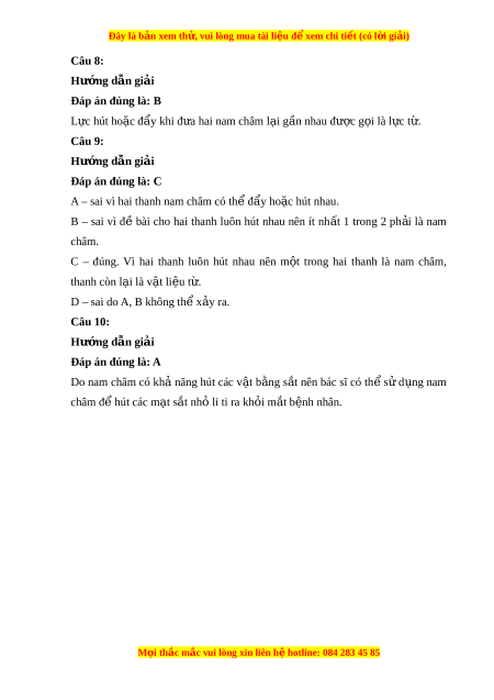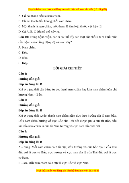 Đây là bản xem th , vu ử i lòng mua tài li u ệ đ xe ể m chi ti t ế (có l i ờ gi i ả ) B. Nam châm có kh năng hút ả các v t ậ b ng ằ s t ắ . C. Nam châm có kh năng hút ả các v t ậ b ng ằ đ ng, nhôm ồ . D. Khi b nung nóng t ị hì nam châm có kh năng ả hút các v t ậ làm b ng ằ s t ắ .