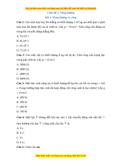 Bài 1. Năng lư ng và công ợ Câu 1: Cho m t ộ máy bay lên th ng ẳ có kh i ố lư ng ợ 5.103 kg sau th i ờ gian 2 phút máy bay lên đư c ợ độ cao là 1440 m. L y