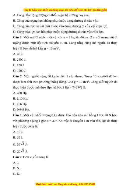 Đây là bản xem th , vu ử i lòng mua tài li u ệ đ xe ể m chi ti t (c ế ó l i ờ gi i ả ) A. Công c a t ủ r ng l ọ ư ng có ợ thể có giá tr d ị ư ng ơ hay âm. B. Công c a ủ tr ng l ọ c ự không ph t ụ hu c d ộ ng ạ đư ng đi ờ c a v ủ t ậ . C. Công c a ủ l c m ự a sát ph t ụ hu c vào d ộ ng ạ đư ng đi ờ c a ủ v t ậ ch u l ị c. ự D. Công c a l ủ c ự đàn h i ồ ph t ụ hu c ộ d ng đ ạ ư ng ờ đi c a v ủ t ậ ch u l ị c. ự Câu 6: M t ộ ngư i ờ nh c ấ m t ộ v t